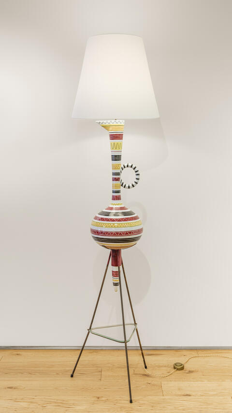 Fausto MelottiGallo, c.1948 Céramique émaillée polychrome 88,8 x 37 x 24,3 cm Signature de l’artiste gravée. Cette œuvre est enregistrée à la Fondazione Fausto Melotti, Milan, sous le n°. 1948 12 Inquire